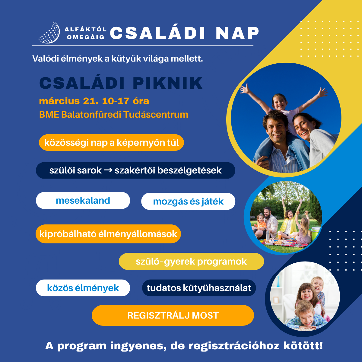 A beszélgetések mellett élményalapú programok, játékok és közösségi aktivitások várják a családokat. A cél, hogy a téma ne csak elméletben jelenjen meg, hanem közös családi élményként is megélhető legyen.